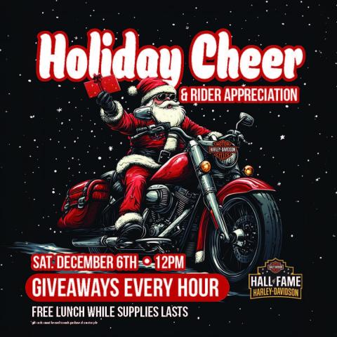 Celebrate the season with us at Holiday Cheer & Rider Appreciation! Enjoy free food starting at 12PM until it’s gone, plus festive fun and prizes all afternoon.